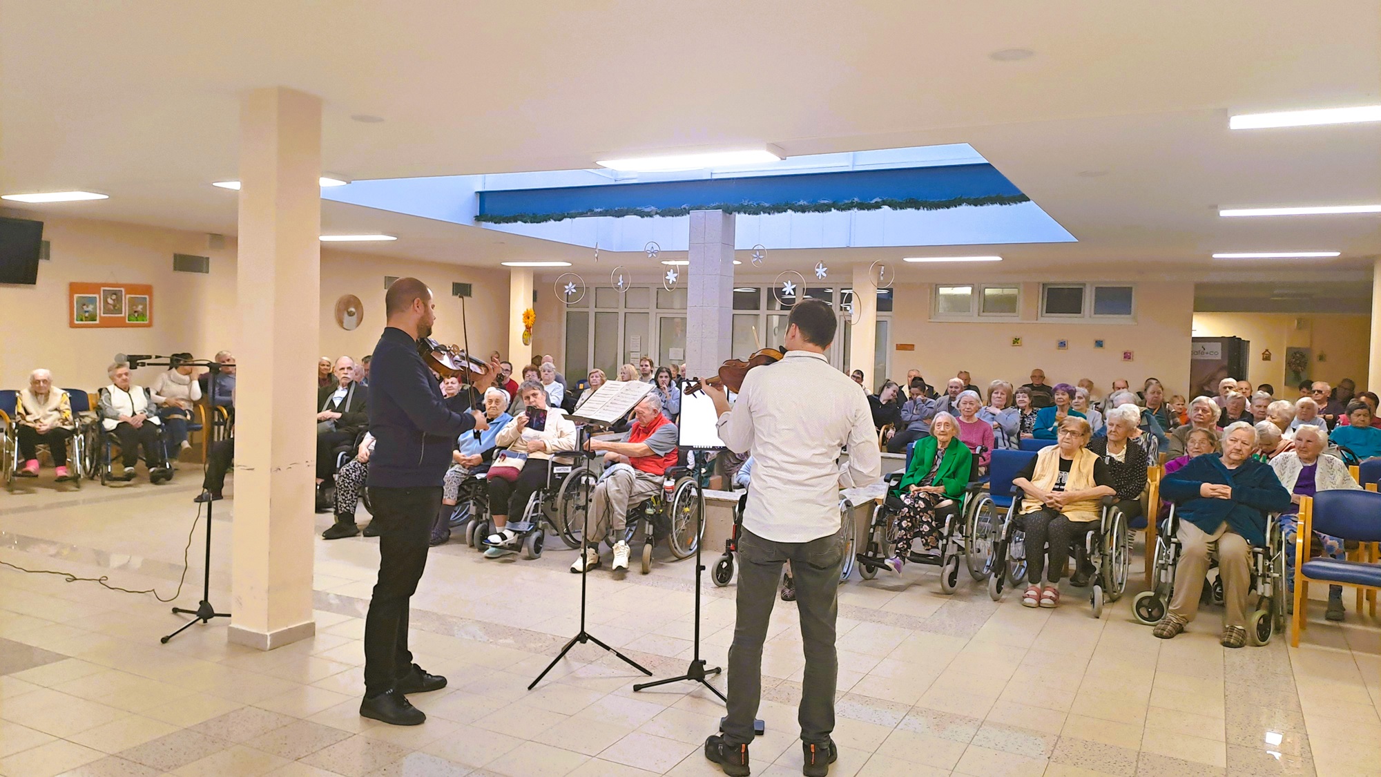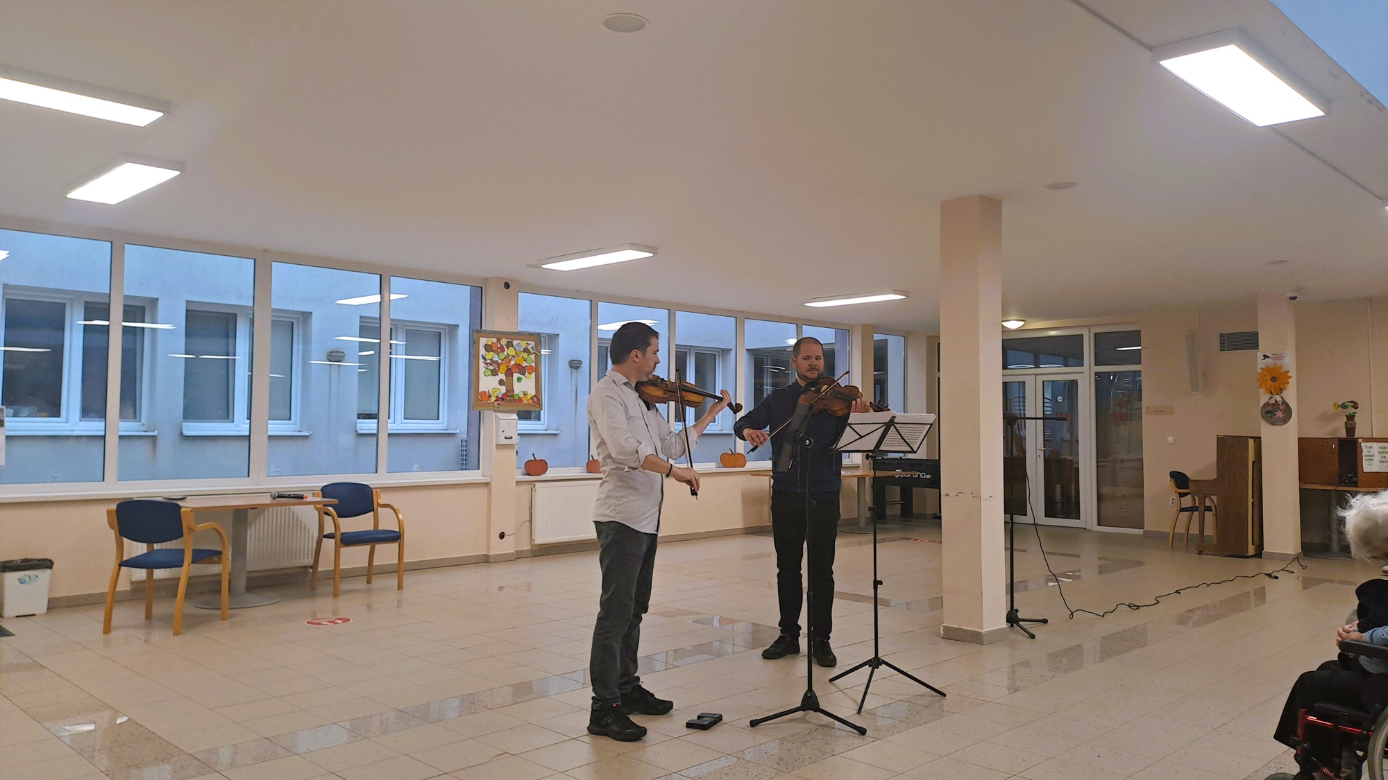 Chodbami Zariadenia sociálnych služieb Zobor sa minulý týždeň ozývala nádherná hudba. Atmosféra bola priam magická! Vďaka podpore z občianskeho združenia „Slavonic o. z. „ a ich skvelému projektu „Koncerty v domovoch dôchodcov a v domovoch sociálnych služieb“, sme mohli medzi sebou privítať dvoch talentovaných hudobníkov. Nimi boli MgA. Andrej Baran, artD. a Mgr. Art. Andrej Krajčovič, ktorí si pripravili pre našich prijímateľov a hostí nezabudnuteľné dopoludnie.
