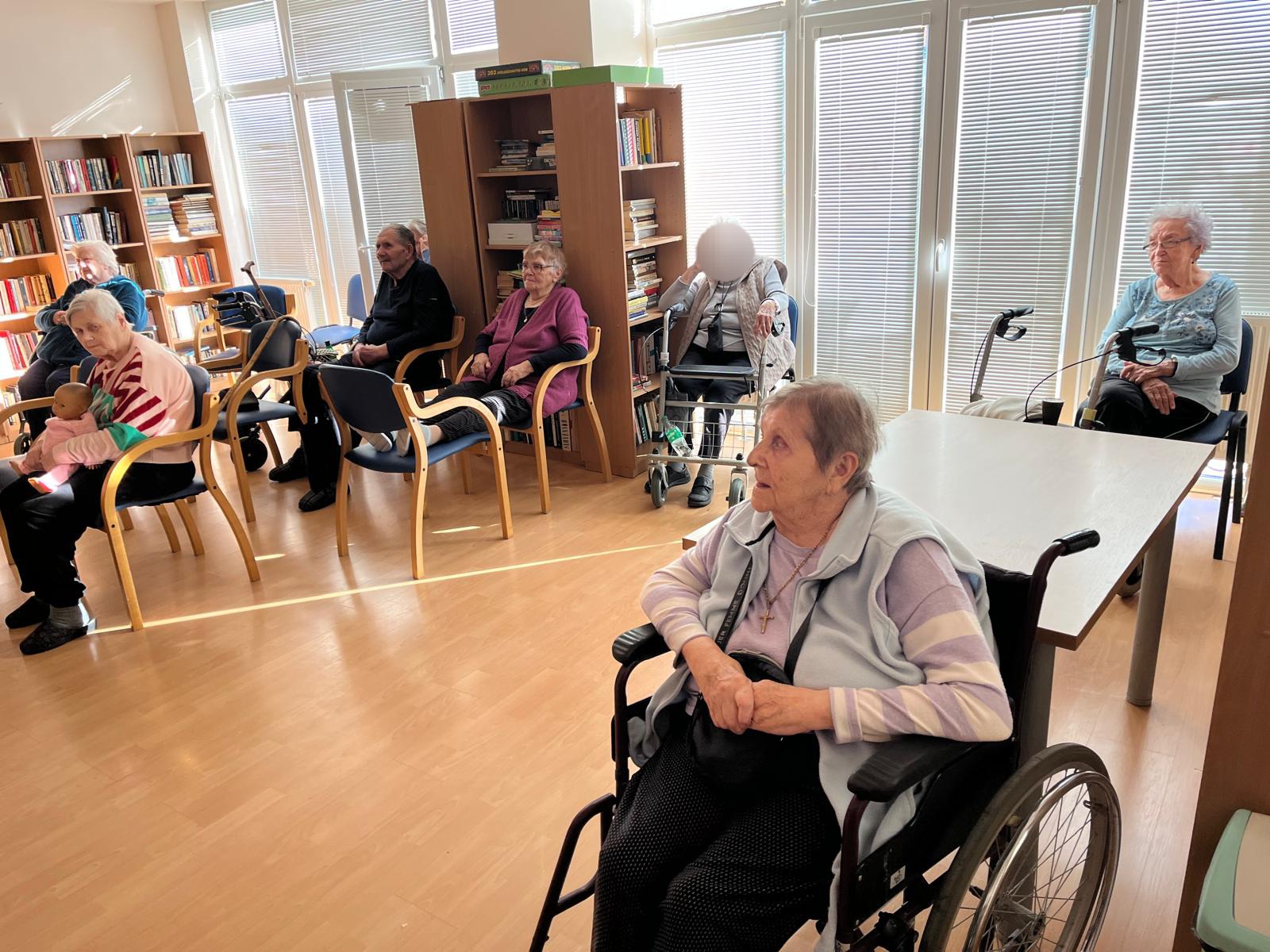 V dennom stacionári sa vďaka podpore NSK uskutočnila bazálna terapia s prvkami canisterapie v období od 23.09. – 29.10. 2025. Celkovo sa uskutočnilo 6 stretnutí a u prijímateľov sociálnej služby mala táto aktivita veľký úspech – prijímatelia sociálnej služby vždy netrpezlivo čakali na príchod psíka a na nové multisenzorické pomôcky, ktoré mohli vyskúšať.