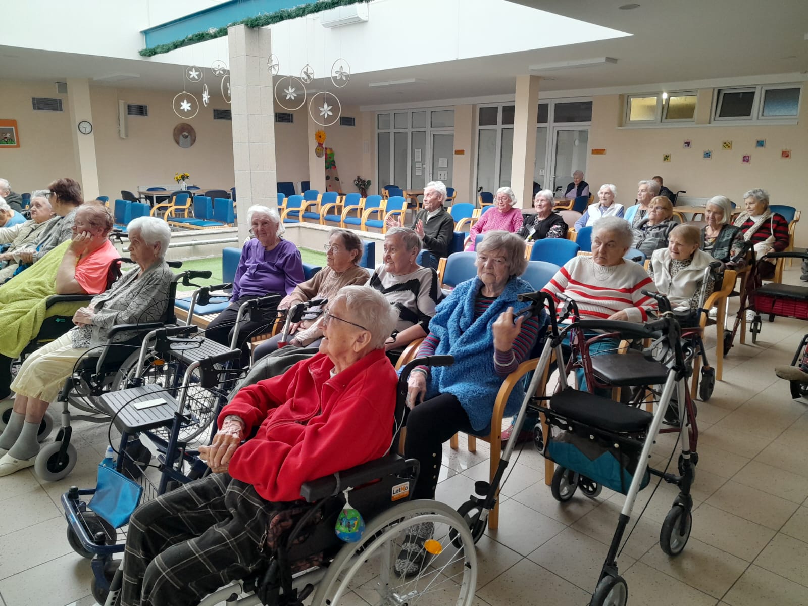 Pani Hanka pri spoločných stretnutiach využila bazálnu terapiu a naši prijímatelia sociálnej služby tak mali možnosť vyskúšať si rôzne senzorické pomôcky, ktoré pomáhajú stimulovať zmysly. Najviac žiadaným sa stal vibračný vankúšik, taktiež zaujala aj magická pena a iné pomôcky.