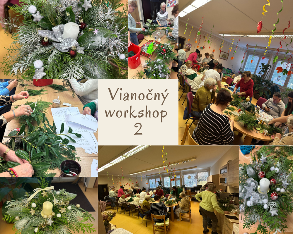 V dennom stacionári sa v spolupráci s denným centrom uskutočnil druhý vianočný workshop, ktorý opäť priniesol množstvo dobrej nálady a kreativity. Tentoraz sme sa spoločne venovali výrobe vianočných ikebán – dekorácií, ktoré dokážu rozžiariť každý priestor a navodiť tú pravú sviatočnú atmosféru.