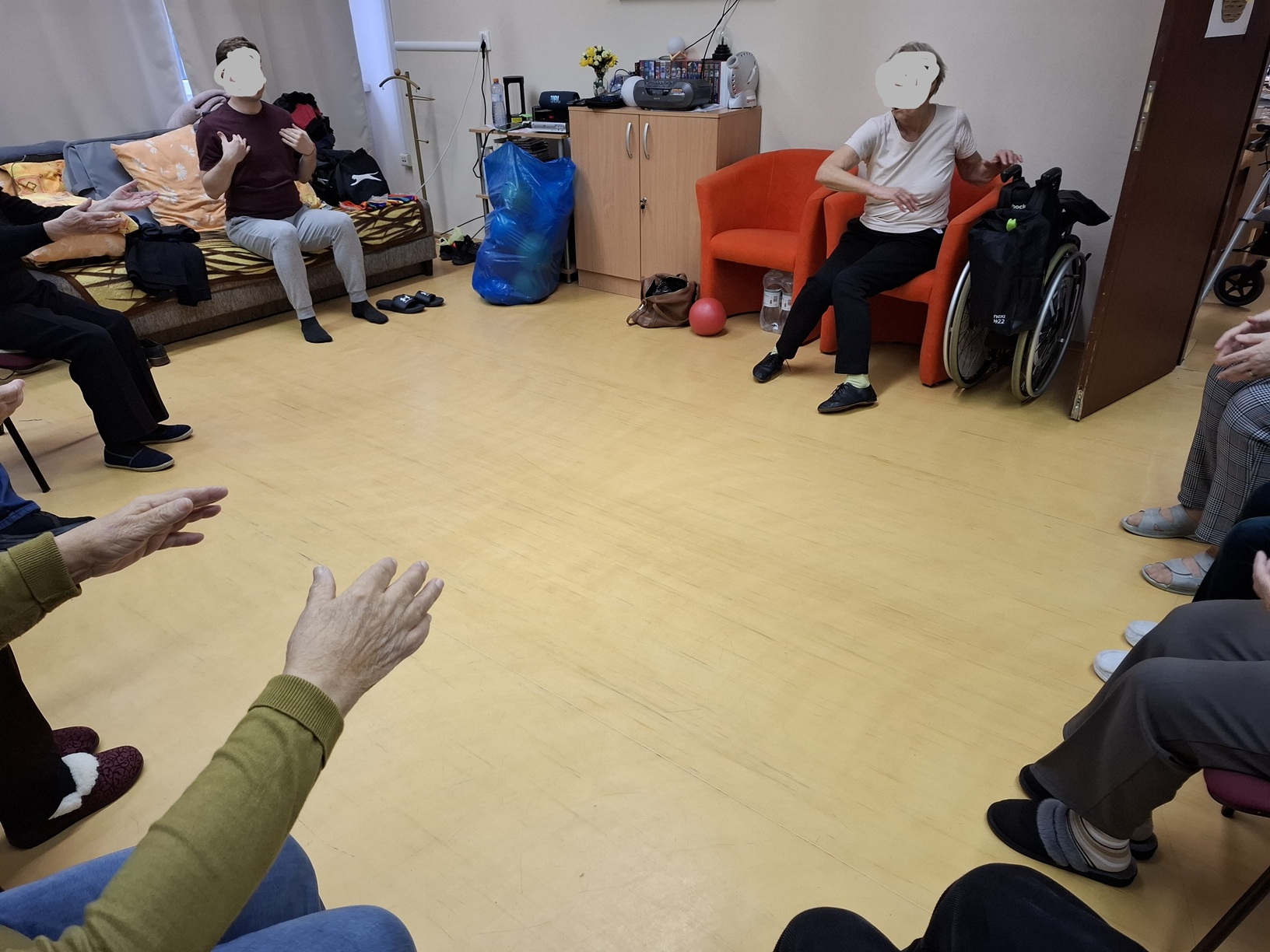 Stretnutie sa uskutočnilo pod odbornou záštitou Mgr. Jozefa Laura, diplomovaného tanečno-pohybového terapeuta. Aktivitu viedla pani Magdaléna Griesbachová, aktívna seniorka a dlhoročná profesorka telesnej výchovy v spolupráci s prijímateľmi sociálnej služby v dennom stacionári pre seniorov. Účastníci sa aktívne zapájali do jednoduchých pohybových cvičení v rytme hudby, ktoré boli prispôsobené ich možnostiam a aktuálnemu zdravotnému stavu. Nešlo o výkon, ale hlavne o radosť z pohybu, uvoľnenie tela a prežívanie prítomného okamihu.