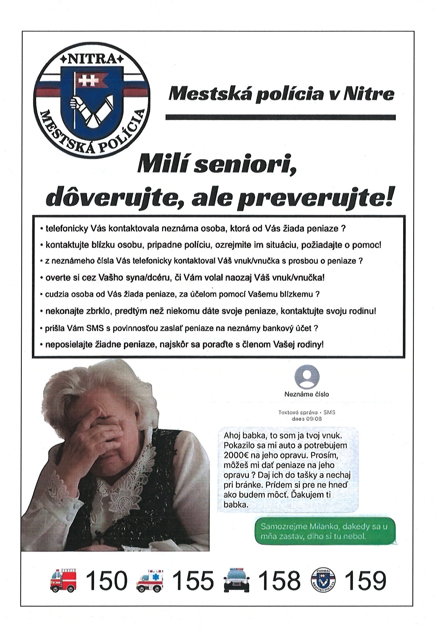 Mestská polícia v Nitre informuje - SENIORI POZOR!!!